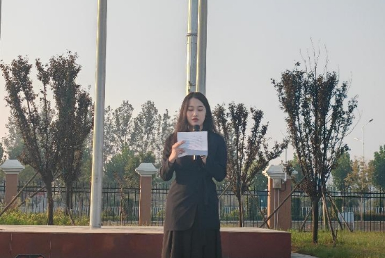 随后,2023级计算机科学与技术2班王淼同学以“山河虽无恙,吾辈当自强”为主题进行了国旗下的演讲,呼吁同学们与时代双向奔赴,牢记当代大学生应有的社会责任感与历史使命感,积极投入到新的学习和生活之中。从现在开始,脚踏实地,努力把自己培养成社会主义事业合格建设者和可靠接班人,为实现中华民族的伟大复兴贡献自己的青春和力量。