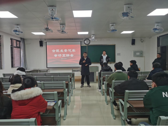 12月4日下午,万象城awcsport官网于一教205举办2024届毕业生专场宣讲会,合肥长安汽车有限公司进行了宣讲。院书记助理侯绪芳、辅导员孙浩以及毕业班全体学生参加了本次宣讲招聘会。