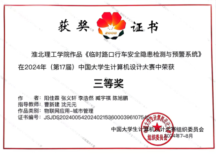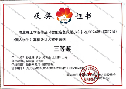 2024年8月13日至17日,第17届中国大学生计算机设计大赛全国总决赛在厦门举行,由万象城官网教师李硕儒、郑海旺指导的孙亚楠、余乐、吴奇豪、王阳群、王冉所组成的参赛队伍的《智能应急救援小车》作品以及万象城官网教师曹新建、沈元元指导的阳佳霖、张义轩、李浩然、臧宇祺、陈旭鹏所组成的参赛队伍的《临时路口行车安全隐患检测与预警系统》作品,在众多参赛作品中脱颖而出,均获得国家级三等奖。