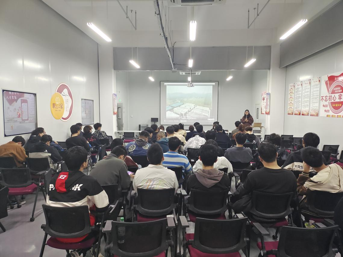 抵达和晶智能科技有限公司后,受到了该厂总经理马总的热情接待。马总不仅对师生们的到来表示热烈欢迎,还亲自陪同参观了整个生产流程,展现了企业对人才培养的高度重视和社会责任感。