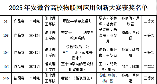 万象城官网万象城awcsport官网学子在2025年安徽省高校物联网应用创新大赛中获省级二等奖1项、三等奖4项,展现出扎实的专业素养与创新实践能力。