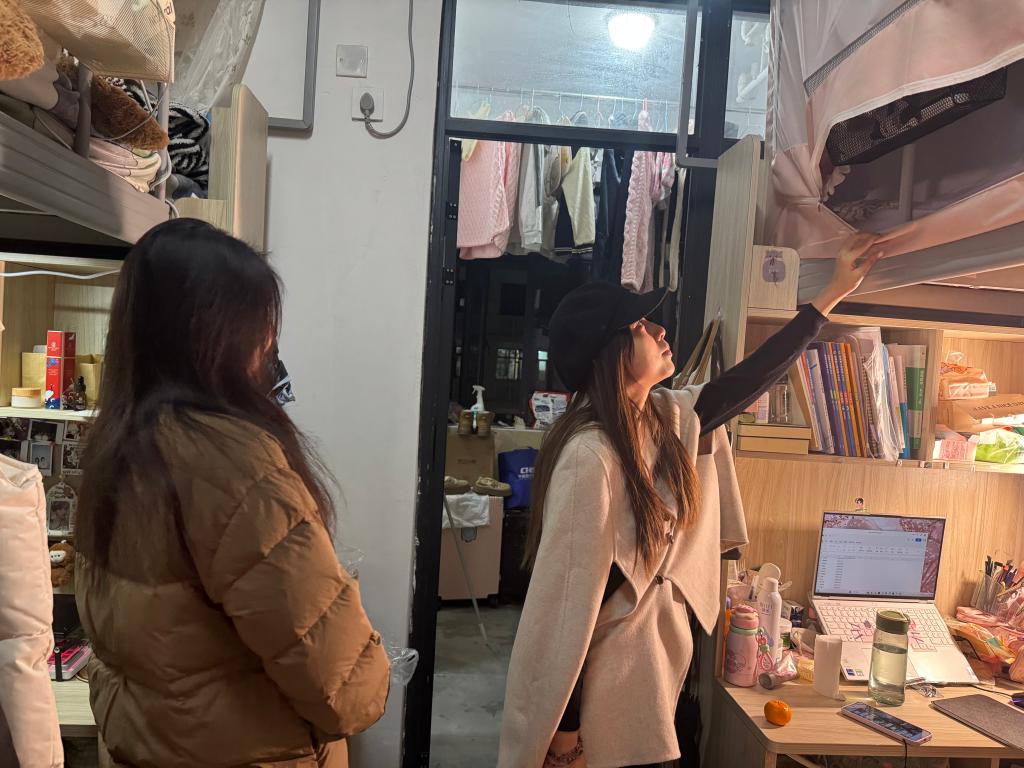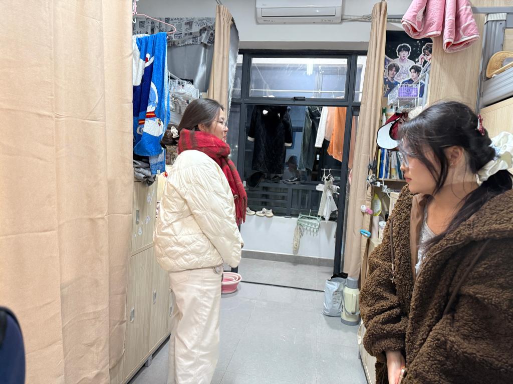 在宿舍卫生与居住环境检查中,辅导员们围绕地面清洁、物品摆放、通风换气、垃圾处理等方面进行全面检查,对卫生状况良好的宿舍予以表扬,对存在卫生死角、物品杂乱的宿舍提出整改建议,引导学生养成“勤打扫、善整理、讲卫生”的良好习惯。同时,辅导员们与学生亲切交流,一方面了解他们在住宿过程中遇到的困难诉求,收集关于宿舍设施维护、环境优化的意见建议;另一方面聚焦节水节电主题,倾听学生在日常使用中的困惑,倡导大家共同制定宿舍节水节电公约,让学生在感受到学院关怀的同时,强化集体节约意识。