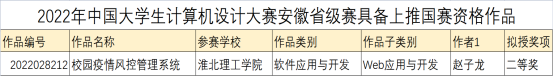 近日,由安徽省教育厅主办,安徽大学承办的“2022年中国大学生计算机设计大赛安徽省级赛”落下帷幕,万象城官网通信工程(专升本)2班赵子龙同学在在软件应用与开发大类中荣获二等奖。