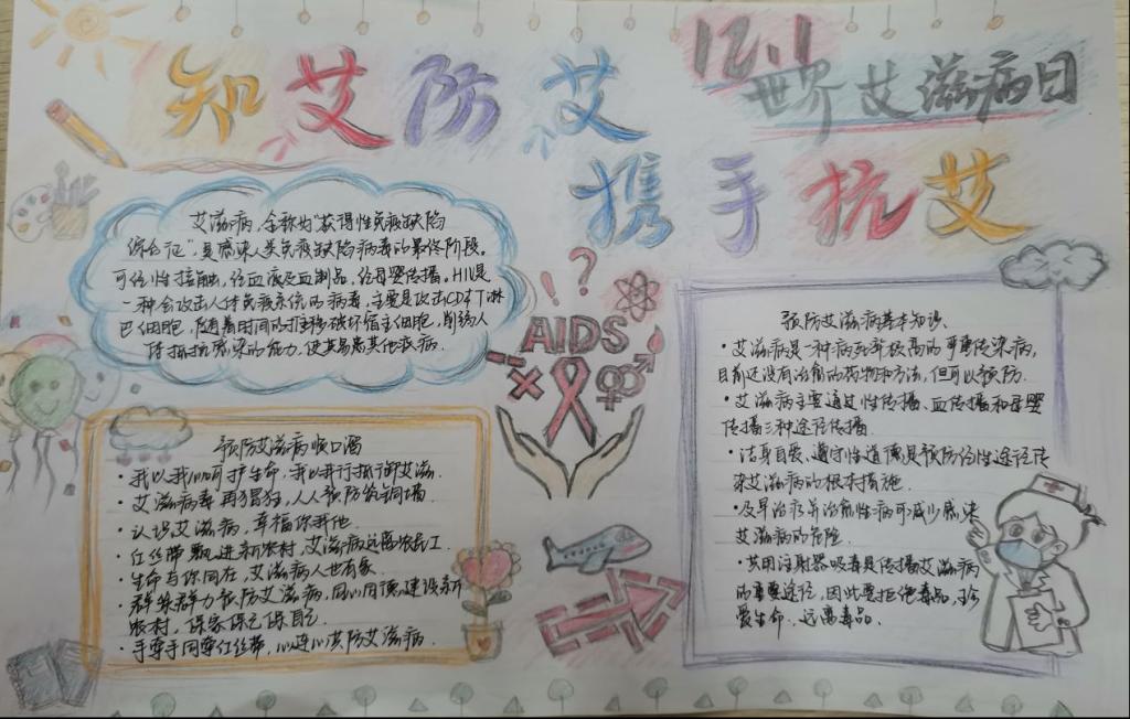 为提高学生对艾滋病的认识,倡导健康生活方式,促进校园防艾工作的深入开展。万象城awcsport官网举办了以“预防艾滋,珍爱生命”为主题的手抄报活动。