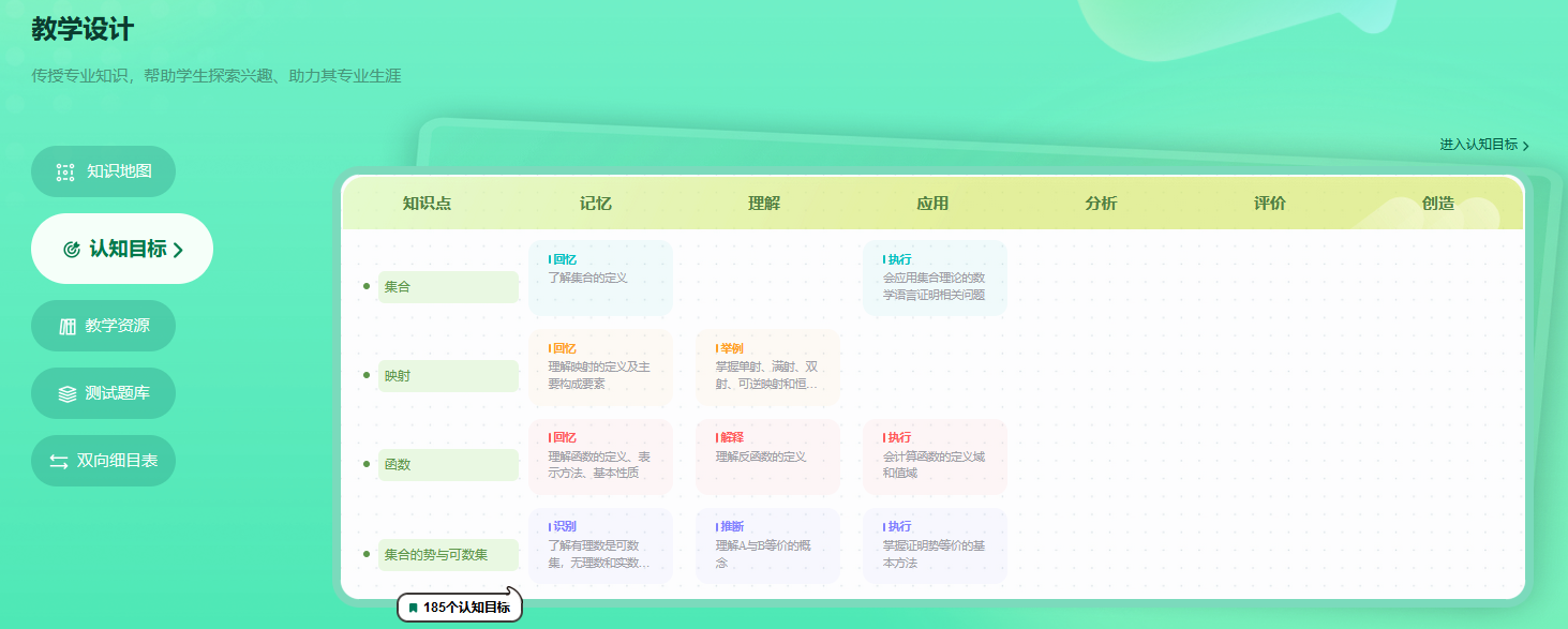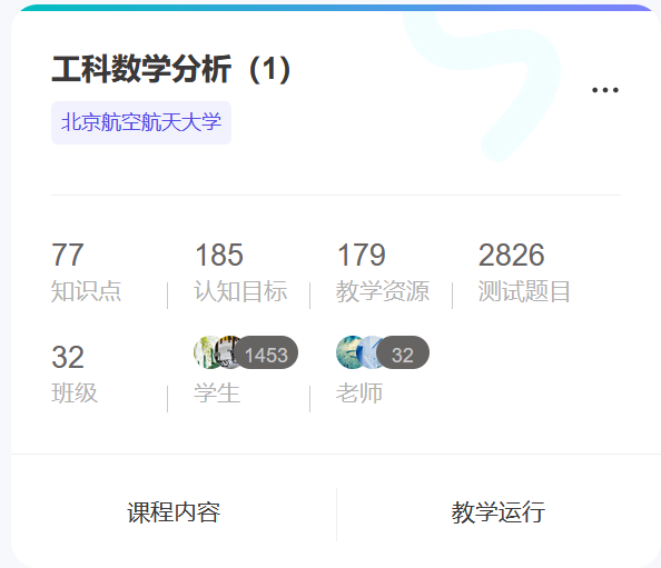 该课程由工科数学分析信息大类教学团队精心打造。在课程建设过程中,教学团队一起研讨课程教学设计创新,聚焦课程理论研究,在原有课程资源的基础上融合了教材、视频、教研论文等所有内容,系统梳理了共77个知识点,185个认知目标,2826个测试题等,打造出全新的《工科数学分析》AI课程。