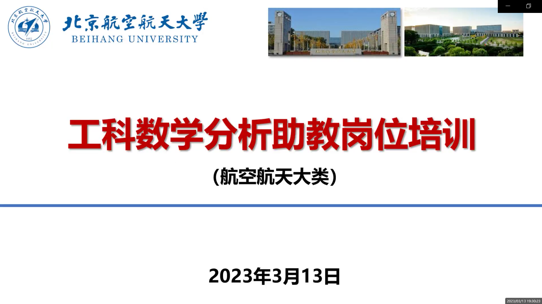 为完善助教工作体系,进一步提高助教工作实效,使其充分发挥“助教、助学、助人、助己”的作用,工科数学分析(航空航天类)课程组于313日通过腾讯会议举办了助教岗位培训与交流大会,参会助教28人。本次培训涵盖了助教招聘情况、助教工作的管理办法、助教基本职责与考核、工作经验的分享与交流等内容,旨在推进“遴选、培训、考核、表彰、传承”为一体的助教队伍系统性建设。