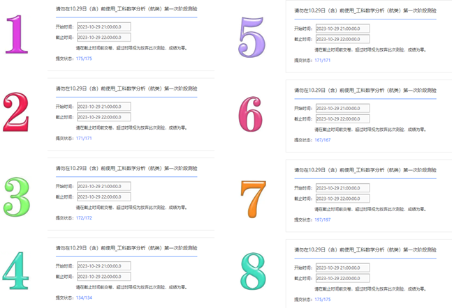 依托学校在线教学平台,工科数学分析课程组(航空航天大类)于1029日晚21点—22点举办了本学期的首次过程性测验,1317名学生认真准备参加线上能力测试,基本上全面覆盖了航空航天大类的大一新生。