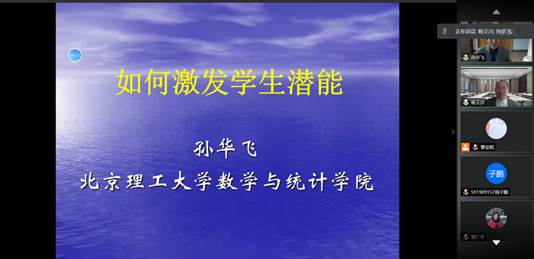 12月30日,“北航数学教学研究中心名师讲座” 首次线上报告活动顺利举行。北京理工大学孙华飞教授为学院师生作了《如何激发学生潜能》专题讲座,该报告吸引了来自北京地区包括北大等高校、以及江西、云南等地多所高校的师生在线学习交流。讲座由北航金年会jinnianhuicom本科教学副院长杨义川教授主持。