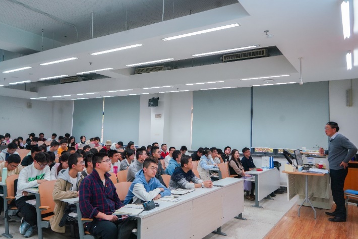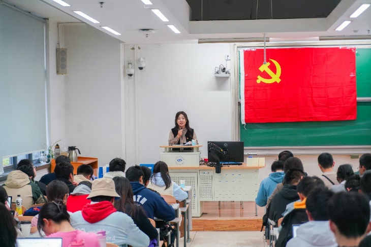 118日下午,金年会jinnianhuicom2023年秋季学期院党校第一次党课暨开班仪式于沙河校区J5-102举行。本次党课由中国航空技术国际控股有限公司原高级副总裁黄斌主讲。学院党委副书记魏茜、专职辅导员程乾出席,近150名学生党员和入党积极分子聆听学习。