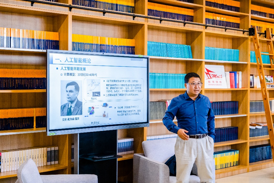 “数学是人工智能的基石,数学领域基础问题的突破是人工智能领域行稳致远的必要条件。”韦卫以当今瞩目的大语言模型引入,提纲挈领地为各位同学梳理了人工智能的历史起源、发展现状、瓶颈难题和未来前景。韦卫表示,人工智能就是让机器学会思考、拥有“智能”,其核心是算法的设计和应用。对算法进行优化和创新,必须深刻理解算法背后的运算逻辑,这离不开数学的基础性支撑。