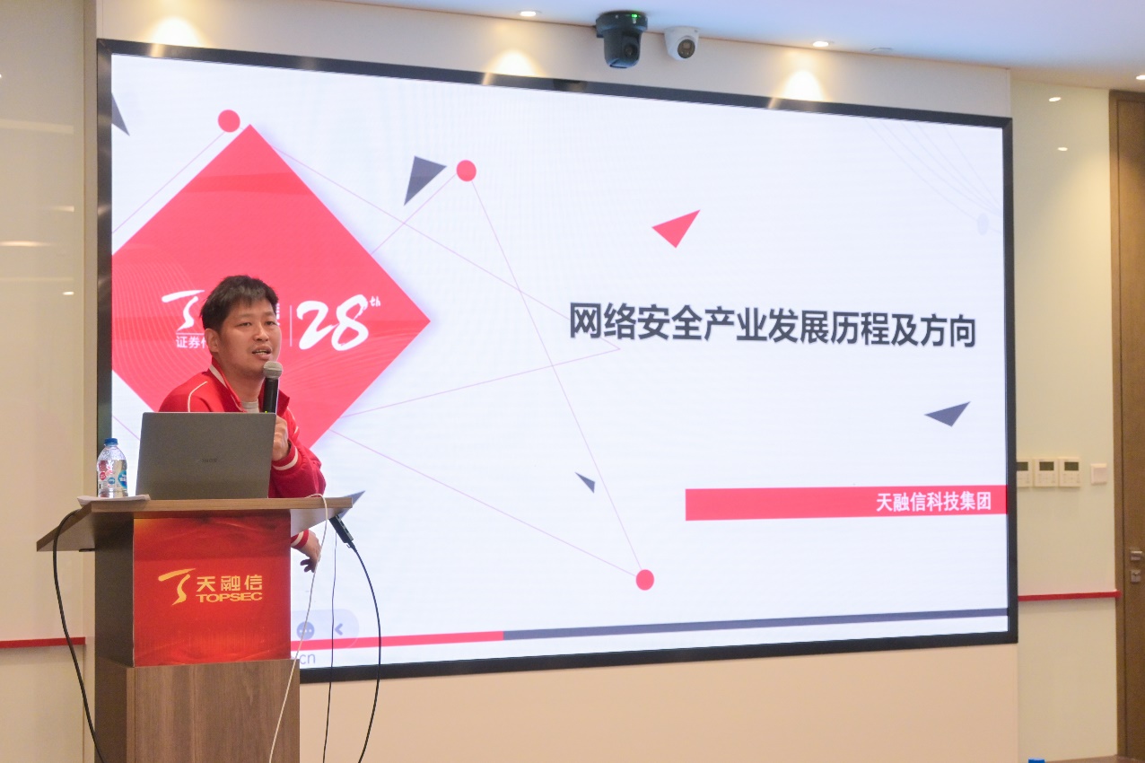 “没有网络安全就没有国家安全,没有信息化就没有现代化。” 天融信科技集团高级副总裁寇增杰在交流会上致辞,他分享了网络安全行业的诞生背景与发展现状,强调了网络安全行业对国家的重要性,并鼓励金年会jinnianhuicom的同学们积极投身网络安全领域,为网络强国建设做出自己的贡献。