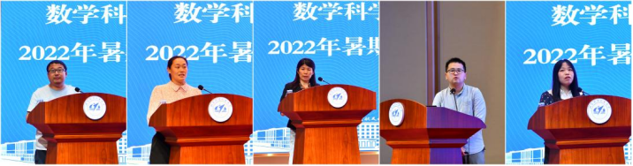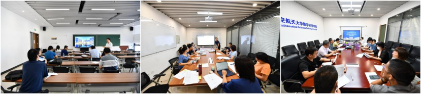 学院副院长马声明作了2022年度上半年本科工作汇报,教指委主任漆毅介绍了新一届院教学指导委员会工作设想,督导组组长李翠萍作了学院督导组工作汇报,公共课建设教师代表杨卓琴介绍了《概率统计》公共课教学改革的规划与设想,专业课建设教师代表张继龙介绍了《复变函数》课程建设报告,副院长夏勇作了学院研究生工作汇报,就业先进典型韦卫分享了研究生就业指导经验,副院长张筱宣讲了学院“智能创新”基金政策,新晋教授王海辉作了理工交叉经验分享报告,青年教师胡鹰翔介绍了青年科学家团队项目并分享教学科研感受,院长助理唐晓弦解读了国际交叉研究院数学中心建设工作。
