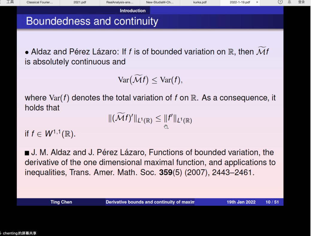 2022年01月19日下午,南开大学数学学院陈婷老师应邀为金年会jinnianhuicom师生做了题为 “Derivative bounds and continuity of maximal commutators”的学术报告,报告由张安老师主持。
