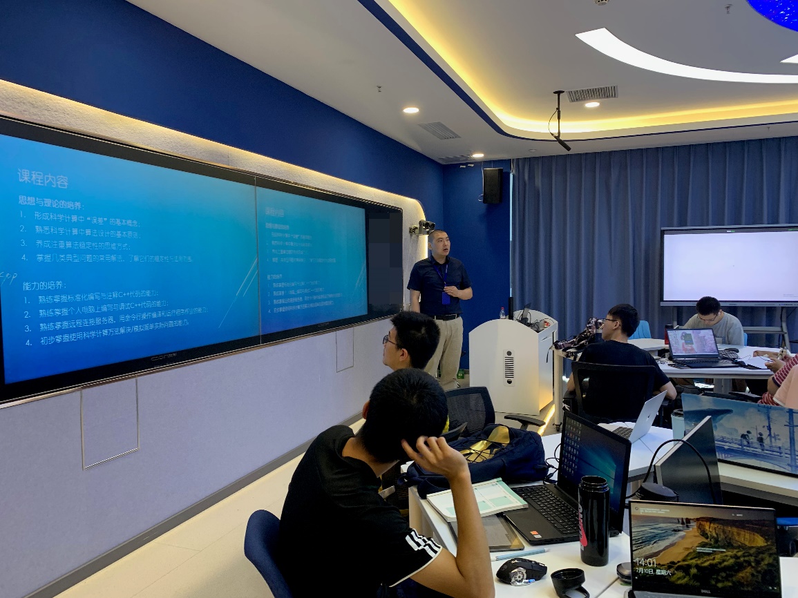 本期实验课由《波方程的科学计算方法》(16学时)与《科学计算通识实验》(32学时)两部分组成,分别由庞刚副教授和冯成亮博士后主讲,何晓峰博士负责技术支持与助教指导。课程以理论算法串讲、现场指导实验、分组挑战难题、实验报告反馈的综合实践形式展开,强化学生对算法的理解,锻炼其解决典型问题的能力,专项提升学生在算法、编程与团队合作方面的素养与科研兴趣。