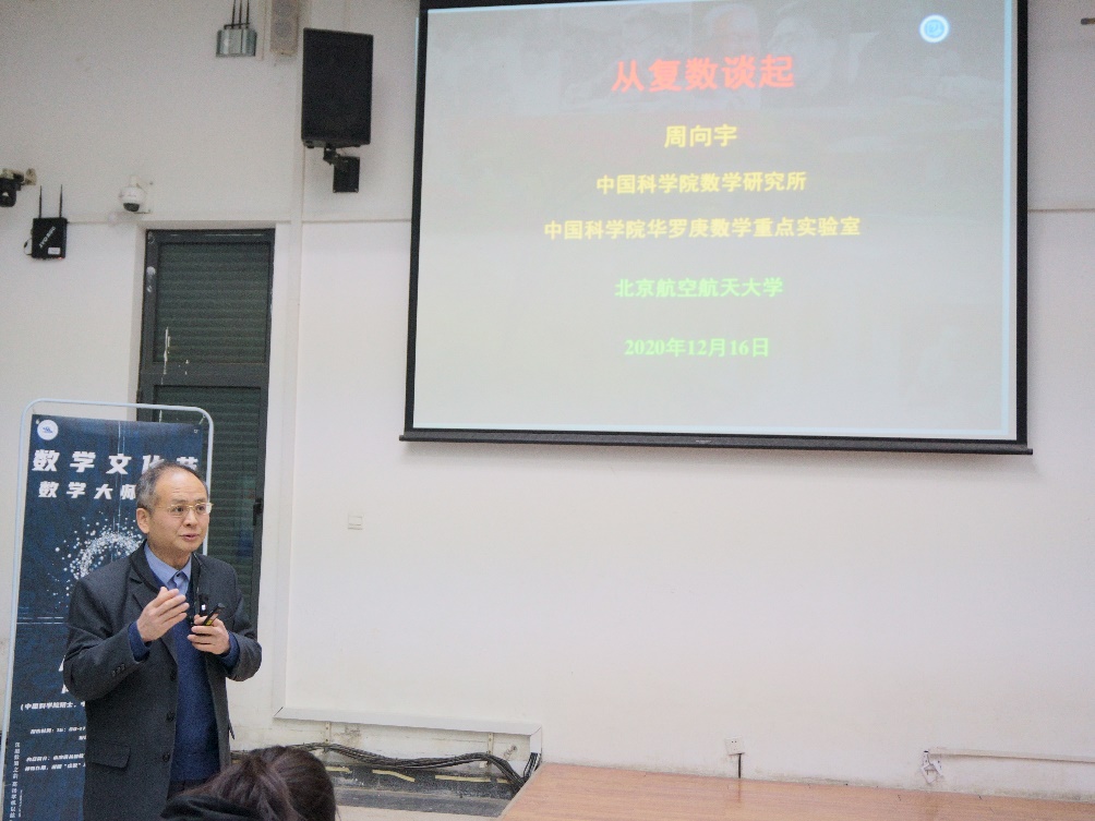 12月16日下午16:00,金年会jinnianhuicom“学习日”活动准时开始,本次“学习日”活动邀请到了中国科学院周向宇院士为同学们带来题为《从复数谈起》的学术报告。