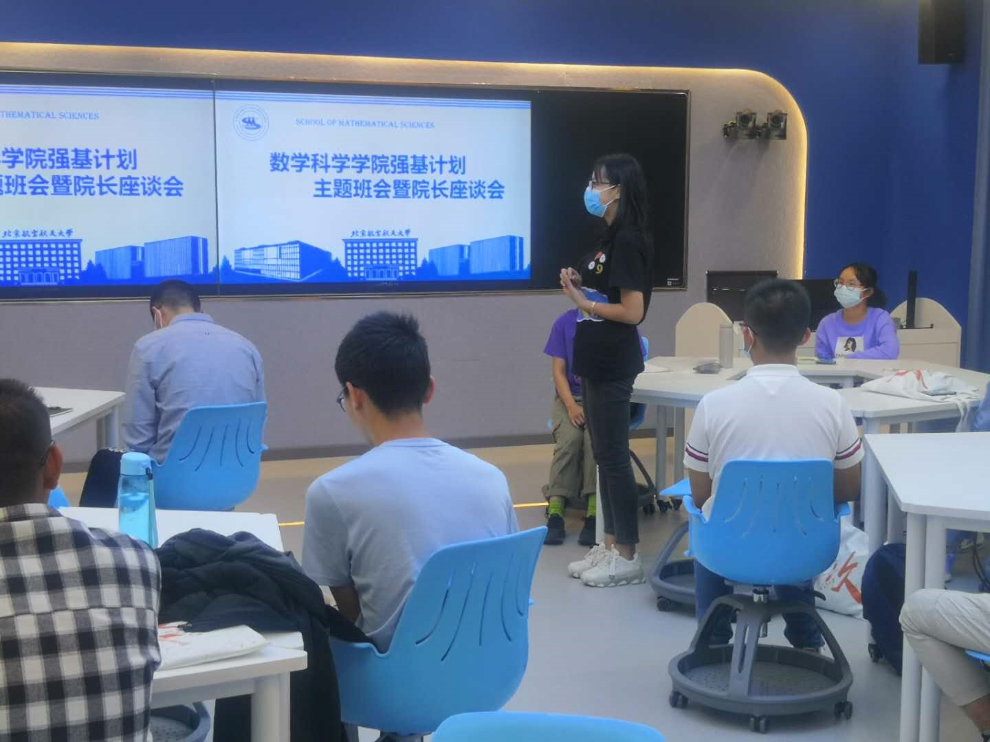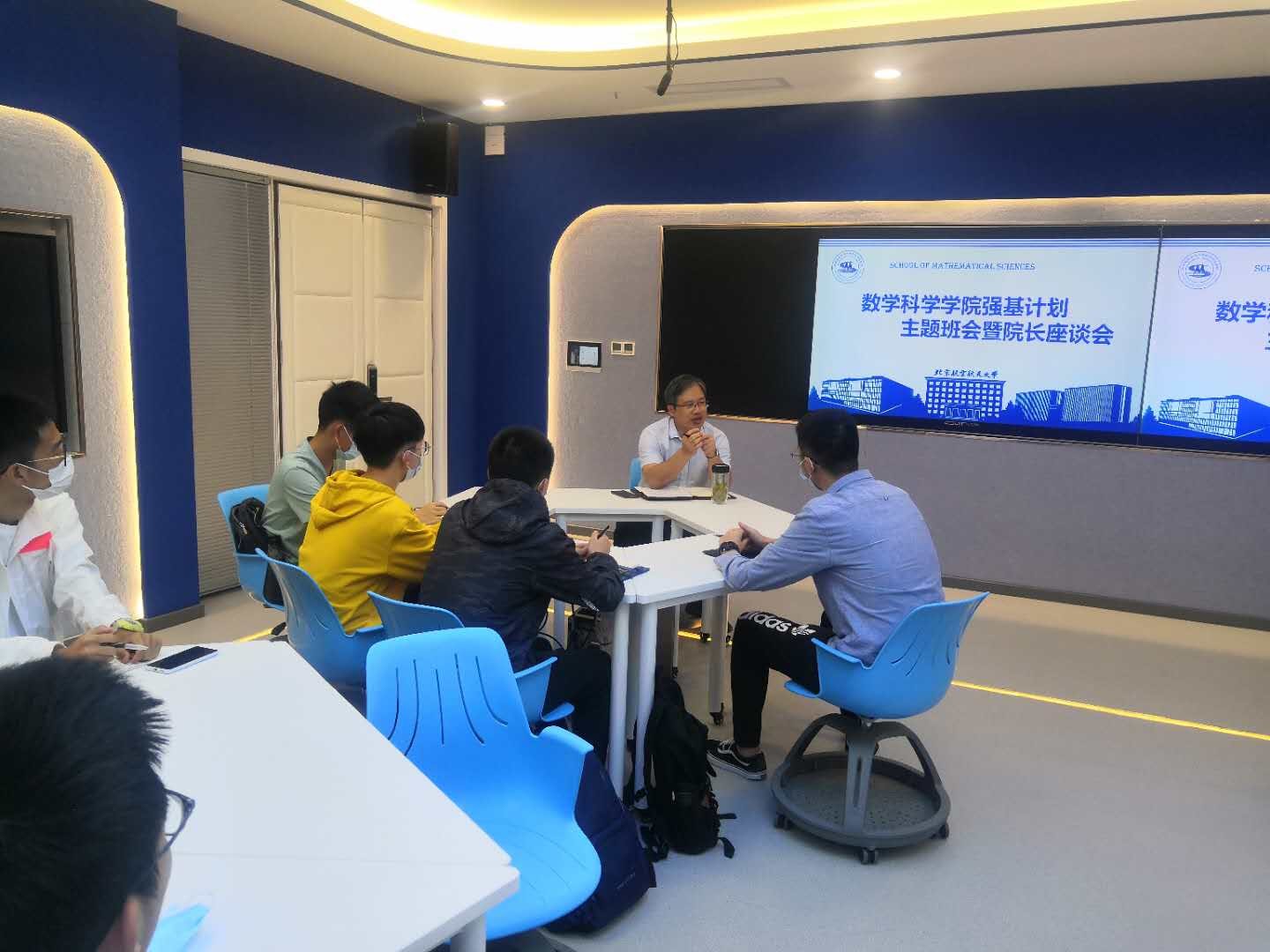 座谈会在轻松愉快的氛围下进行,同学们畅所欲言,依次进行了自我介绍,分享了自己选择强基计划的数学专业的初衷。韩院长首先对新生们选择强基计划的初衷表达了肯定,“数学学科强基计划服务国家重大战略需求,踏实地走好数学道路,需要空天报国情怀的引导,在这一方面,你我都是志同道合的战友”。