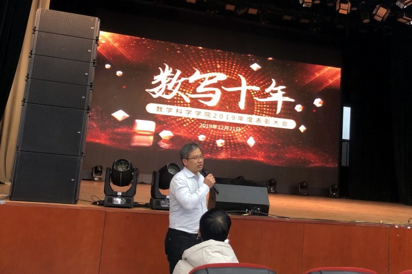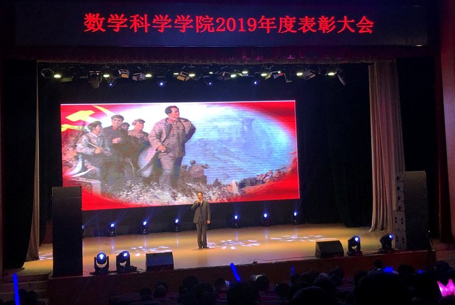 大会伊始,数学学院韩德仁院长致辞,向与会师生介绍了2019年学院搬迁沙河校区、庆祝建院十周年的大事和喜事,并简介学院今年在人才、教学、科研等方面做出的努力和取得的成绩,向嘉宾和师生表示诚挚的谢意和新年祝福。