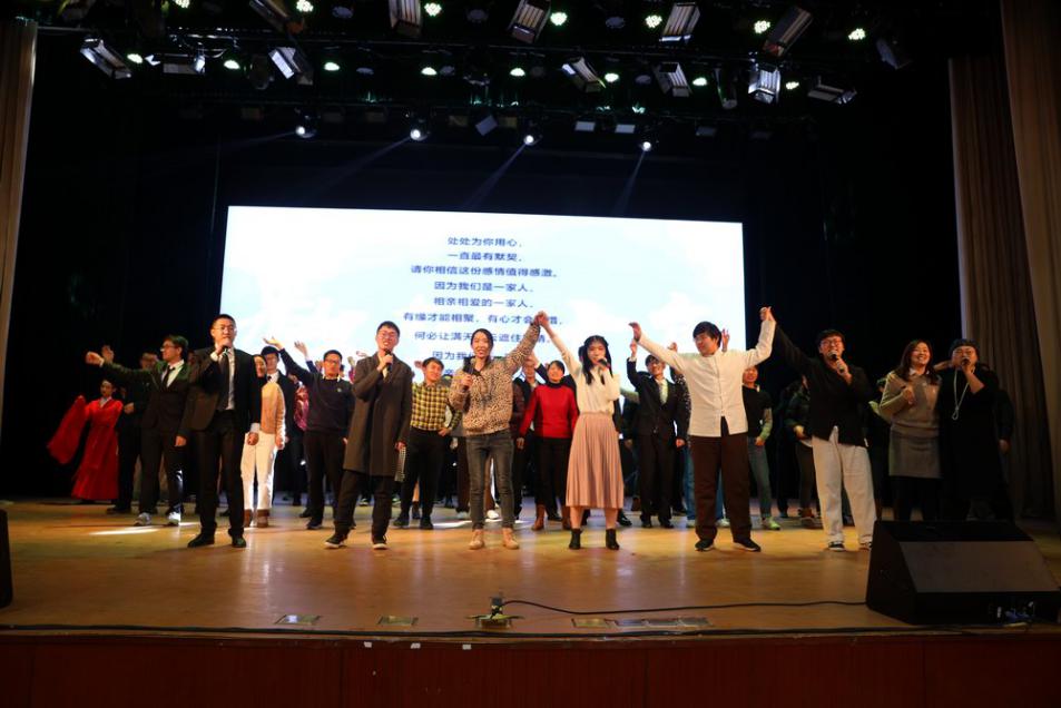 最后,与会嘉宾与现场师生一起上台,共同唱响了歌曲《相亲相爱一家人》,将整个表彰大会推向高潮,大会圆满落下帷幕。