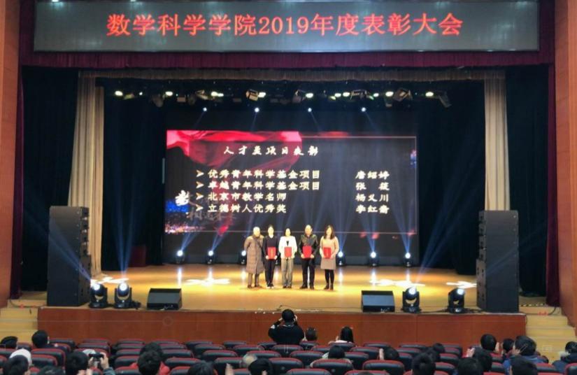 本次表彰大会分别从学科建设、教学、科研、党建和人才培养五个篇章进行总结表彰。在第一篇章“才贤更进”中,林群院士为本年度学院获批人才项目和奖励的教师代表颁奖。2019年,学院历史以来首次获批“卓青”,连续两年获批“优青”,时隔7年后再次获批“北京市教学名师”,连续两年获得“立德树人”优秀奖,在建院十周年的时间结点上,学院的人才队伍建设也更上一层楼,目前形成了院士、长江、杰青、优青等梯队完整的高层次人才队伍,尤其是近两年,高层次人才队伍增长了4人,达到了11人,占专任教师队伍的13.6%。