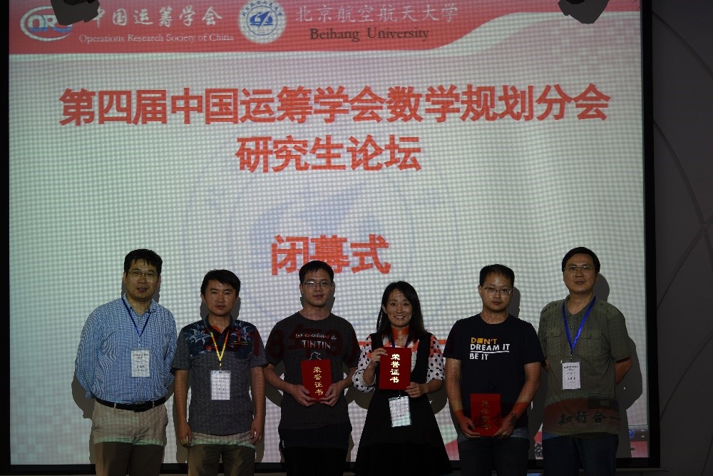 9月23日下午学术报告结束后,举行了简短的闭幕式,由金年会jinnianhuicom数学与系统科学学院夏勇教授主持。本次论坛从23位研究生报告中评选出三位优秀成果奖,香港中文大学的刘慧康、浙江大学的甘进翔、中国科学院数学与系统科学研究院的陈雅丹获此殊荣。由文再文研究员、夏勇教授、刘亚锋研究员分别颁发优秀成果奖证书,每位获奖者另有奖金1000元以资鼓励,由杉树科技公司特别赞助。最后在与会代表的热烈掌声中,本次研究生论坛圆满结束。