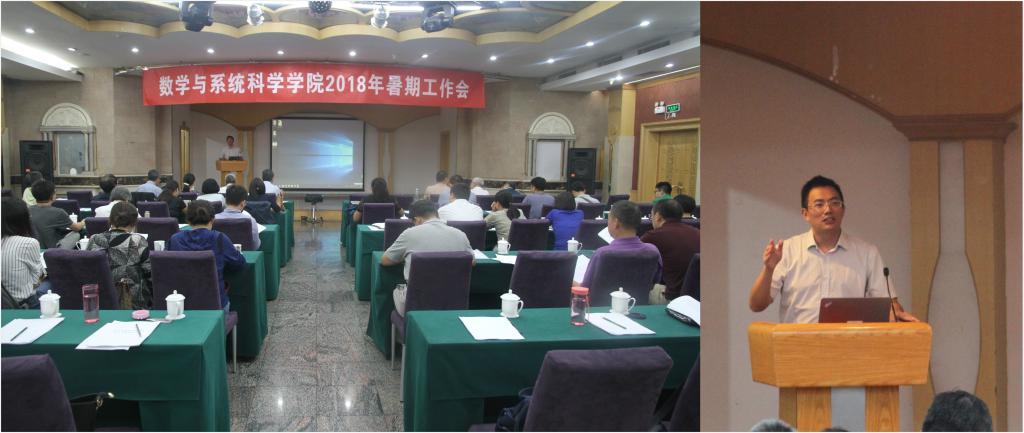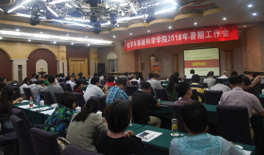 9月7日至8日,数学与系统科学学院2018年暑期工作会在密云云湖会议中心召开。本次会议为期两天,由全院大会暨主题发言、分组研讨及学院总结大会等多个环节组成。院长韩德仁、院党委书记袁星、学院顾问北京大学原教务长方新贵老师及全院教职工出席会议并参与讨论。大会由党委书记袁星主持。