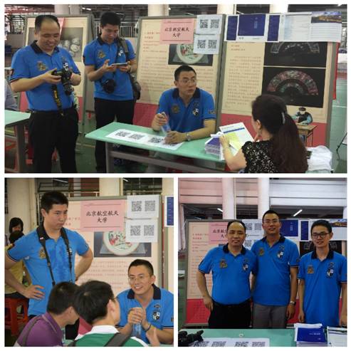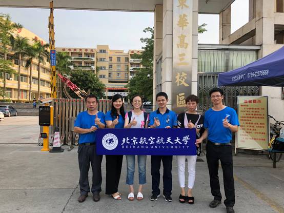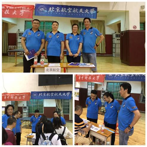 此次招生工作得到了广东省校友会、深圳校友会、佛山校友会、东莞校友会以及珠海校友会的大力支持,招生团队从2018年5月就开始建立微信群酝酿宣传方案,规划工作路线,充分借助校友资源,积极挖掘人际媒介,进一步加强北航在华南地区的影响力。在正值酷暑的招生宣传期间,北航赴广东招生工作组得到了校友们在衣食住行方面无微不至的关怀,在广东省校友会的全程协调,深圳校友会、佛山校友会、东莞校友会以及珠海校友会的全力协助下,共有百余位优秀的校友参与了招生宣传相关工作,共同出谋划策,倾力奉献。其中广东校友会张滨滨秘书长精心为招生组专门设计招生服装,隋莉副秘书长统筹安排“滴滴校友”的爱心车辆,胡振校友、夏虎校友、关琪校友、李杰校友、刘华松校友、胡勇校友、谢经干校友、袁绍敏校友、马骋校友、谭桔桔校友、何丽冬校友等热情帮助安排专车或亲自驾车护送招生老师城际穿梭,大大提高了工作效率。