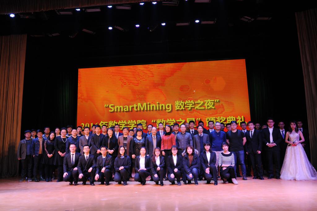 数学学院2015年设立“数学之星”奖项,表彰在学习、科技实践、社会工作、志愿服务、创新创业以及文体方面表现突出的同学,树立宣传学习的典范,2016年在95级校友徐晶的赞助支持下,学院举办首届“SmartMining 数学之夜”2016年数学学院数学之星颁奖典礼旨在表彰数学优秀学子,展示数学校友风采,传承数学大爱文化。 颁奖典礼在“走红毯”的仪式中拉开帷幕。在同学们的热情洋溢的欢呼声中,众位校友、老师以及获得奖项提名的同学们分别走过红毯,在签名版签到与同学们合影,在同学们的眼中,他们就是闪耀光芒的“明星”。