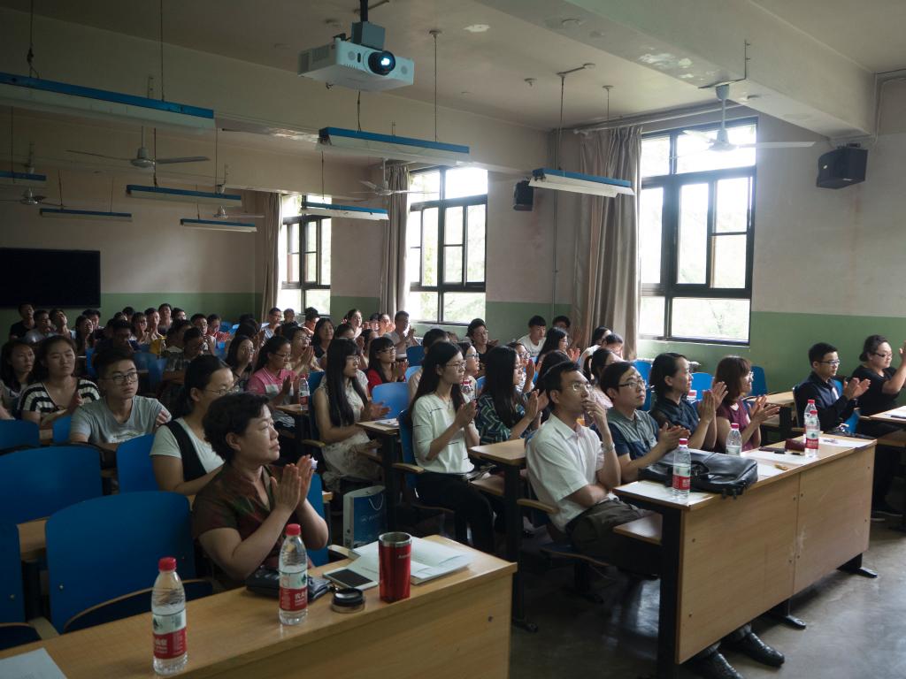 教务秘书谭青祥老师对研究生阶段的学制学分要求、培养环节以及选课注意事项做了详细的介绍,并着重强调了诚信的重要性。最后,王菲老师为大家介绍了我院学生工作的相关情况,对学籍管理及奖学金评定进行了耐心细致的说明,并从方便同学日后工作、生活角度给大家具体说明了几个重要问题,鼓励大家在学习、科研、生活上积极主动,融入新的环境,创造新成果。2016级研究生开学典礼圆满结束。