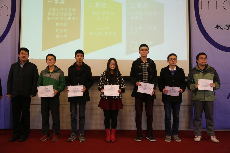 首先,数学学院学生会主席方泽华同学从建模比赛、趣味数学越野赛、数学嘉年华的活动参与情况对本次数学文化周做了一个回顾。接下来,在一个简短而精美的视频中,我们看到了在过去的一个星期中数学文化迷人的魅力。之后,郭炳晖老师对本次数学建模的整体情况予以点评,肯定了同学们的努力,同时也指出了同学们在英语表达能力等方面的不足,为同学们以后的比赛提供了有价值的指导。接着,郭老师宣读建模比赛获奖名单,为获奖同学颁发了证书。李红捷书记为数学越野赛获奖的同学颁发了奖品。