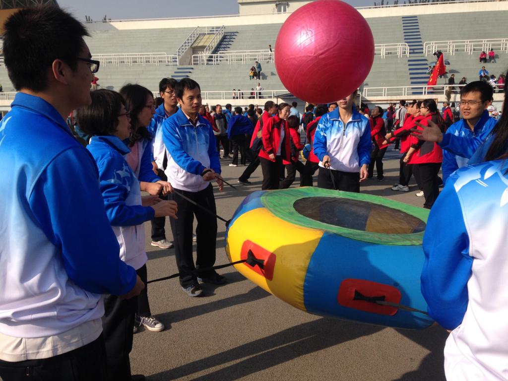 简约是本次运动会的主旨。开幕式之后,几乎没有间隔,作为主旋律的集体项目就鸣枪开始了。巨大的鸿运彩球,在八双齐心共力、协同一致的大手托举下向前、向前。此起彼伏的呐喊声将运动会一下子推向了高潮。