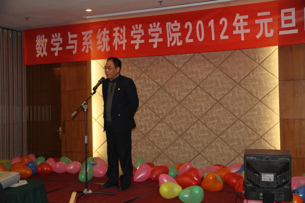 小12月30日下午,数学与系统科学学院全体教职工欢聚一堂,举行2012年元旦联欢玩会。中科院林群院士,北航郑志明副校长,国际交流与合作处马进喜处长,物理学院乐小云书记等参加了联欢晚会。首先郑志勇院长介绍了学院在2011年在学科建设、人才培养、师资队伍、合作与交流方面取得成绩,在随后的联欢会上教职工们大展身手,各亮绝技,歌声飞扬,汇聚了如:笛子独奏、歌唱、小合唱等众多文艺节目,所有表演的节目都赢得满堂喝彩,为联欢会增添了喜庆和欢乐的气氛。,工会也精心组织了众多游戏。整场联欢会气氛热烈。