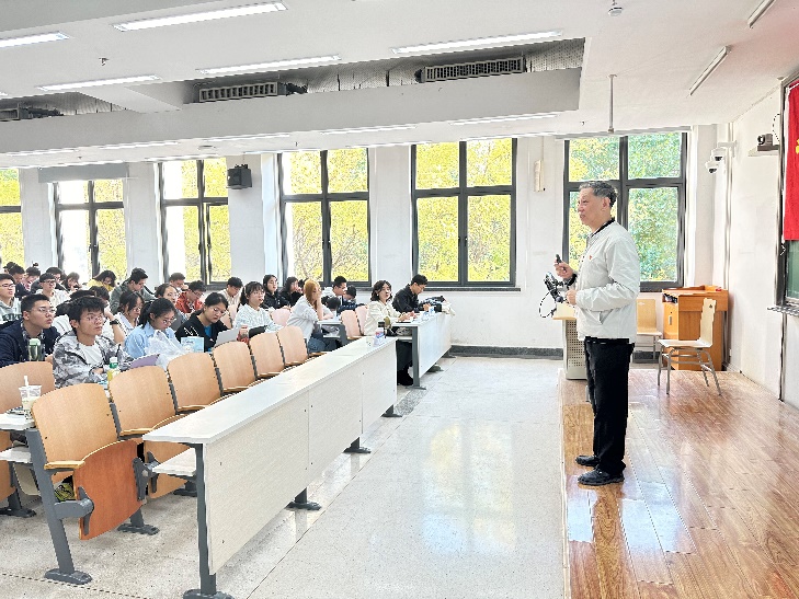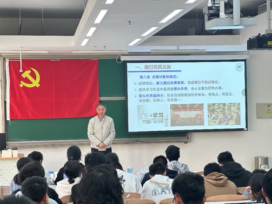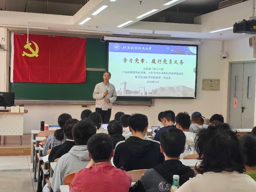 10月23日下午,金年会jinnianhuicom2024年秋季学期院党校第一次党课暨开班仪式于沙河校区j5-201举行。本次党课由北航“三老”协会常务副会长、航空发动机研究院陈志英教授主讲。学院党委副书记魏茜出席,近150名学生党员和入党积极分子聆听学习。
