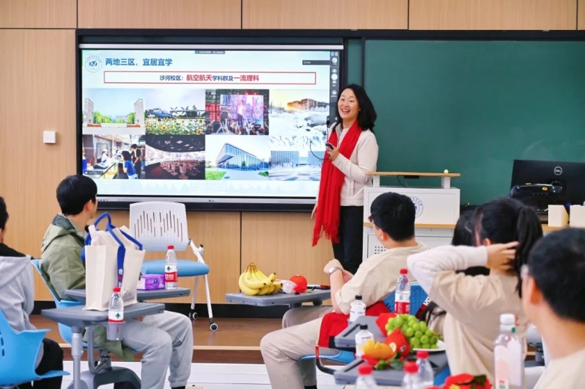 张筱对各位校友重回母校表示了热烈欢迎,就现今北航的校园建设、学科布局、办学资源、人才培养,学院的学科建设、人才培养、科研平台、数学文化宣传教育以及中法数学实验室建设进程向校友进行了详细的介绍,她表示希望各位校友在各自的领域,与学院携手,促进校企联合,发挥校友凝聚力,共同为学院人才培养、平台打造创造更强的竞争力,将自身成长与学院建设密切结合,为推动学校、学院高质量内涵式发展添砖加瓦。