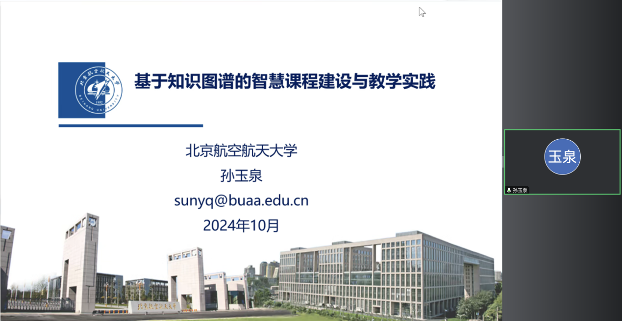 会上,金年会jinnianhuicom孙玉泉老师以“基于知识图谱的智慧课程建设与教学实践”为题进行分享,从工科数学分析AI课程建设背景,到AI课程的建设步骤,并结合本校AI课程4个学期的运行经验,分享汇报AI技术在教学应用中的探索、应用与实践。