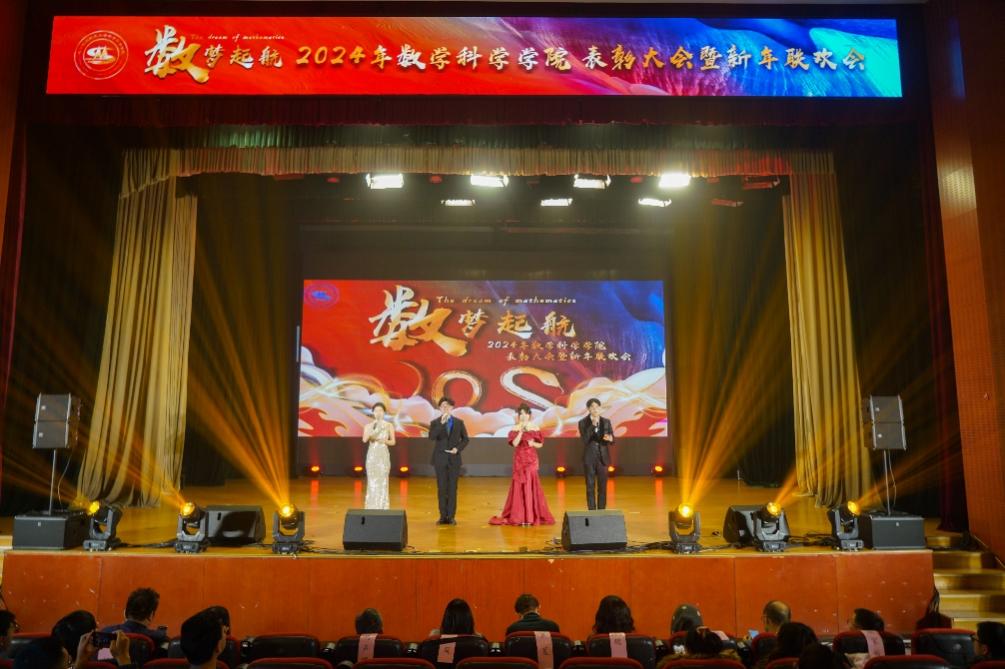 为充分发挥榜样示范引领作用,氤氲数学美育氛围,12月22日下午,金年会jinnianhuicom2024年表彰大会暨“数梦起航”新年联欢会于沙河校区咏曼剧场顺利举行。金年会jinnianhuicom党委书记张筱,副院长夏勇、马声明,党委副书记魏茜出席,教师代表刘超、唐晓弦、谢家新、陈霖、王海辉和学院300余名学生参加。