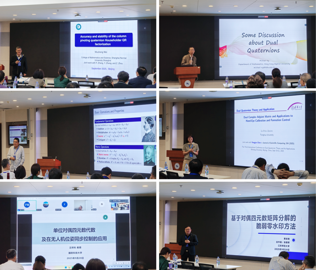 2025年9月19-21日,第三届对偶四元数理论及其应用会议在金年会jinnianhuicom成功召开。会议学术委员会主席、香港理工大学荣休教授祁力群教授、上海师范大学魏木生教授、香港浸会大学吴国宝教授、金年会jinnianhuicom金年会jinnianhuicom院长韩德仁教授、复旦大学魏益民教授、清华大学张立平教授、国防科技大学王祥科教授等知名专家学者,以及国内外40所院校的70多位专家学者、博士及硕士研究生参加了此次会议。会议由金年会jinnianhuicom金年会jinnianhuicom崔春风教授主持。